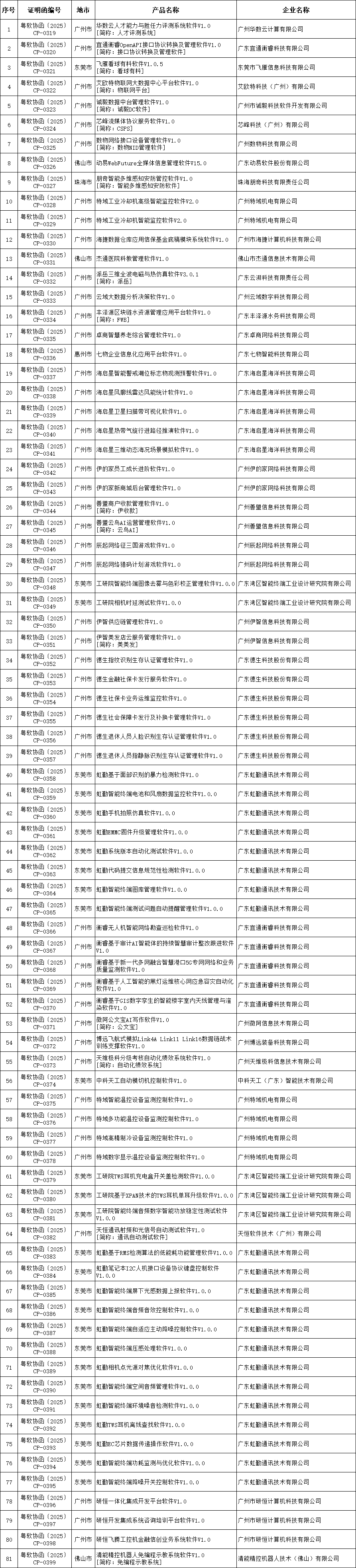 广东省2025年11月第(2)批次软件产品评估通过名单(81项)
