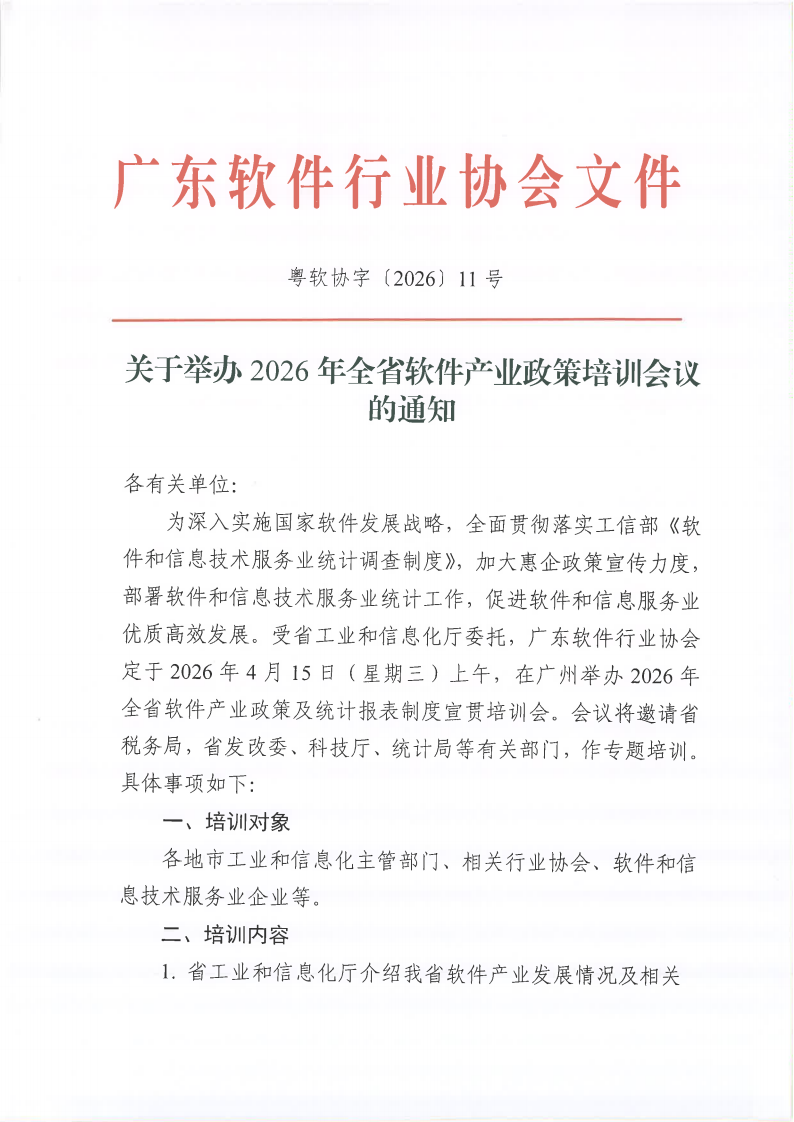 粤软协字[2026]11号-关于举办2026年全省软件产业政策培训会议的通知.pdf